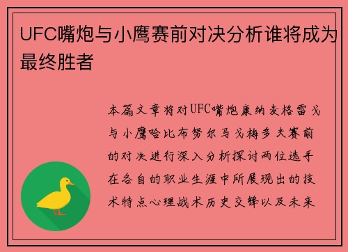 UFC嘴炮与小鹰赛前对决分析谁将成为最终胜者
