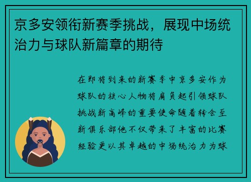 京多安领衔新赛季挑战,展现中场统治力与球队新篇章的期待